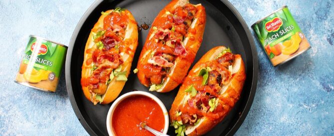 Hot Dogs with Crispy Bacon, Spicy Peach BBQ Sauce, [...]